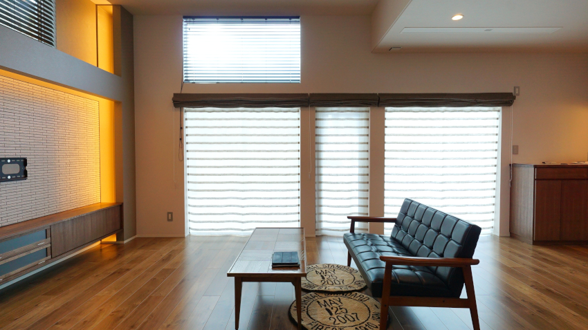 リビング一面の窓 朝が待ち遠しい家